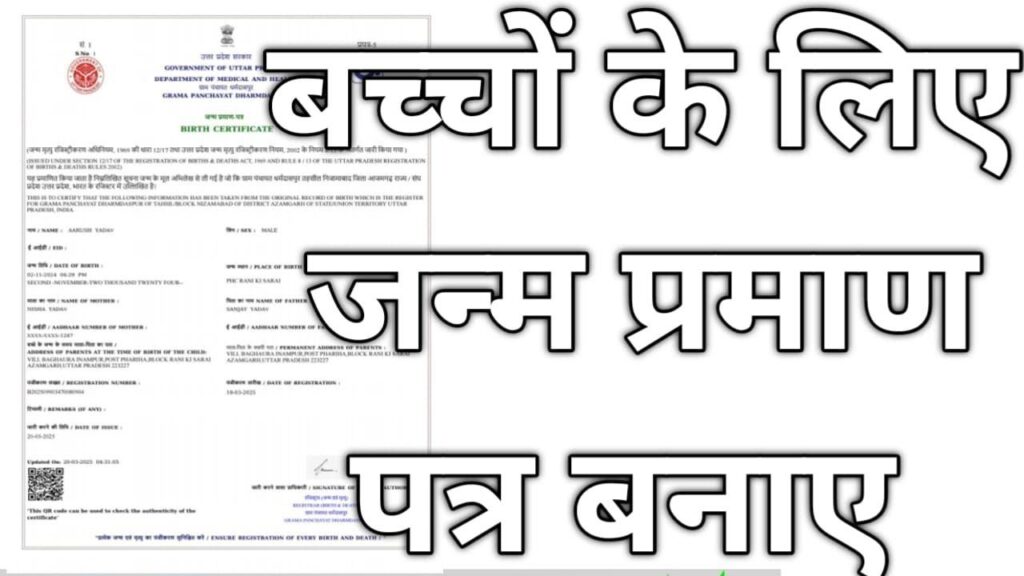 - जन्म प्रमाण पत्र ऑनलाइन डाउनलोड करें या कार्यालय से प्राप्त करें।