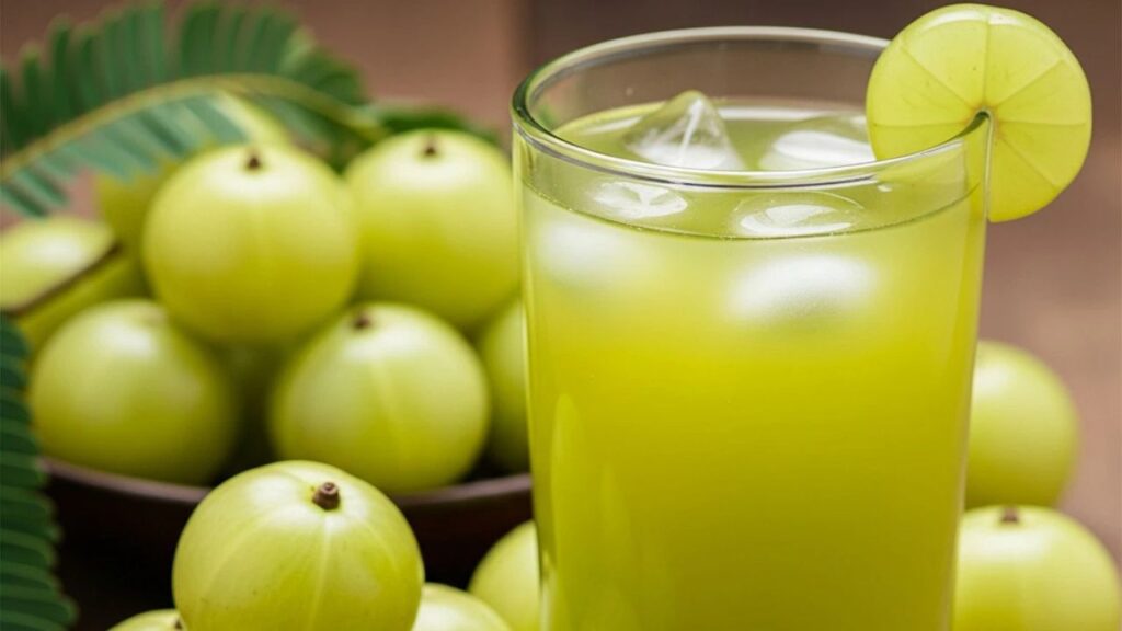 Amla juice: Blend deseeded amla with water, strain, and drink fresh.