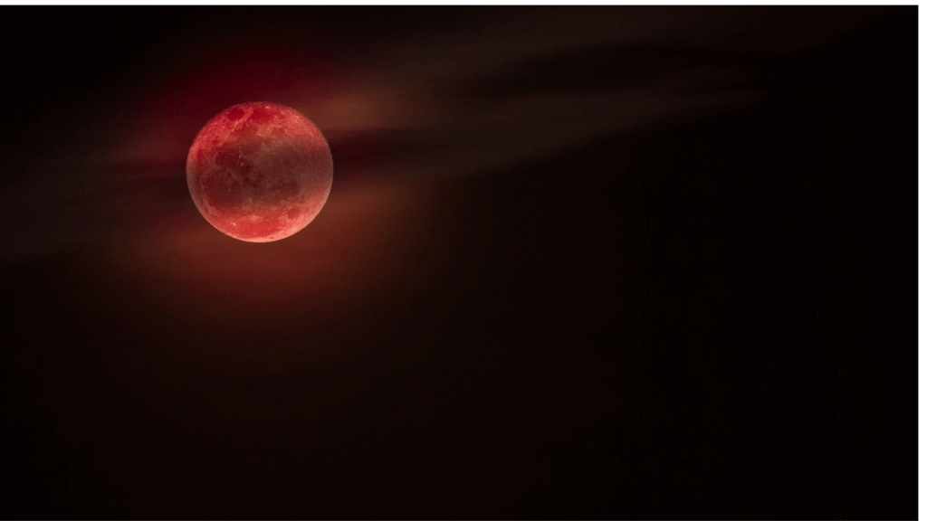 - पूर्ण चंद्र ग्रहण (Total Lunar Eclipse) – जब चंद्रमा पूरी तरह पृथ्वी की छाया में चला जाता है।